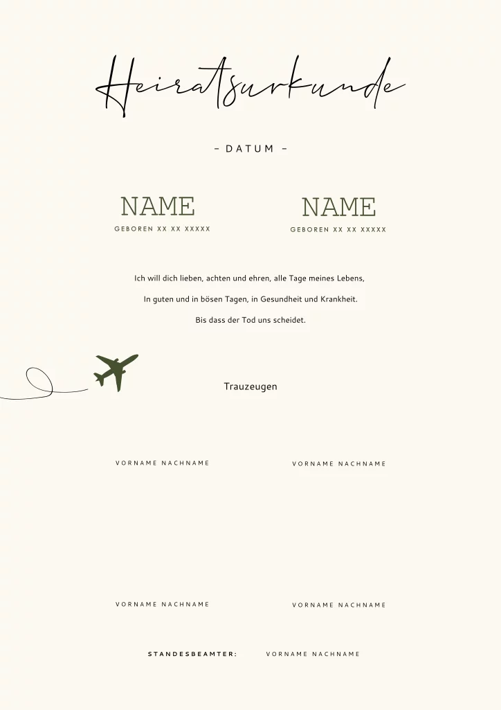 Unterschreibt an eurem Hochzeitstag auch diese inoffizielle Urkunde als Erinnerung: ein A4-Poster, das ihr später in eurem Haus aufhängen könnt. Wir empfehlen, zur Sicherheit, zwei zu bestellen.