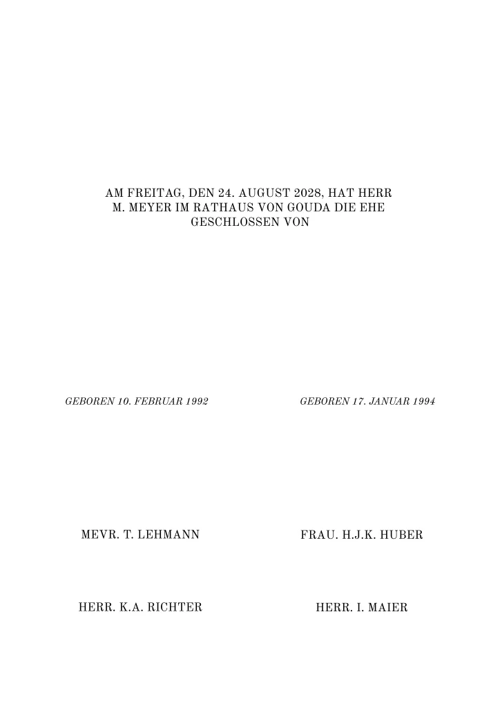 Unterschreibt an eurem Hochzeitstag auch diese inoffizielle Urkunde als Erinnerung: ein A4-Poster, das ihr später in eurem Haus aufhängen könnt. Wir empfehlen, zur Sicherheit, zwei zu bestellen.