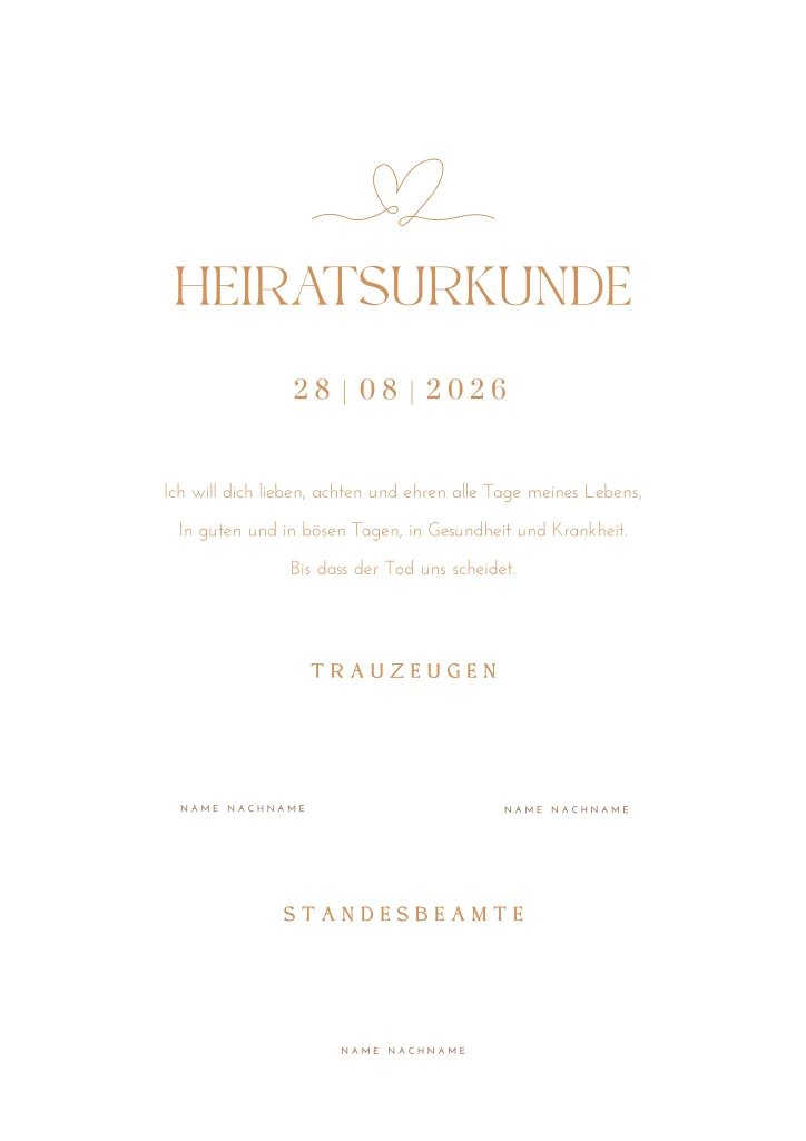 Unterschreibt an eurem Hochzeitstag auch diese inoffizielle Urkunde als Erinnerung: ein A4-Poster, das ihr später in eurem Haus aufhängen könnt. Wir empfehlen, zur Sicherheit, zwei zu bestellen.