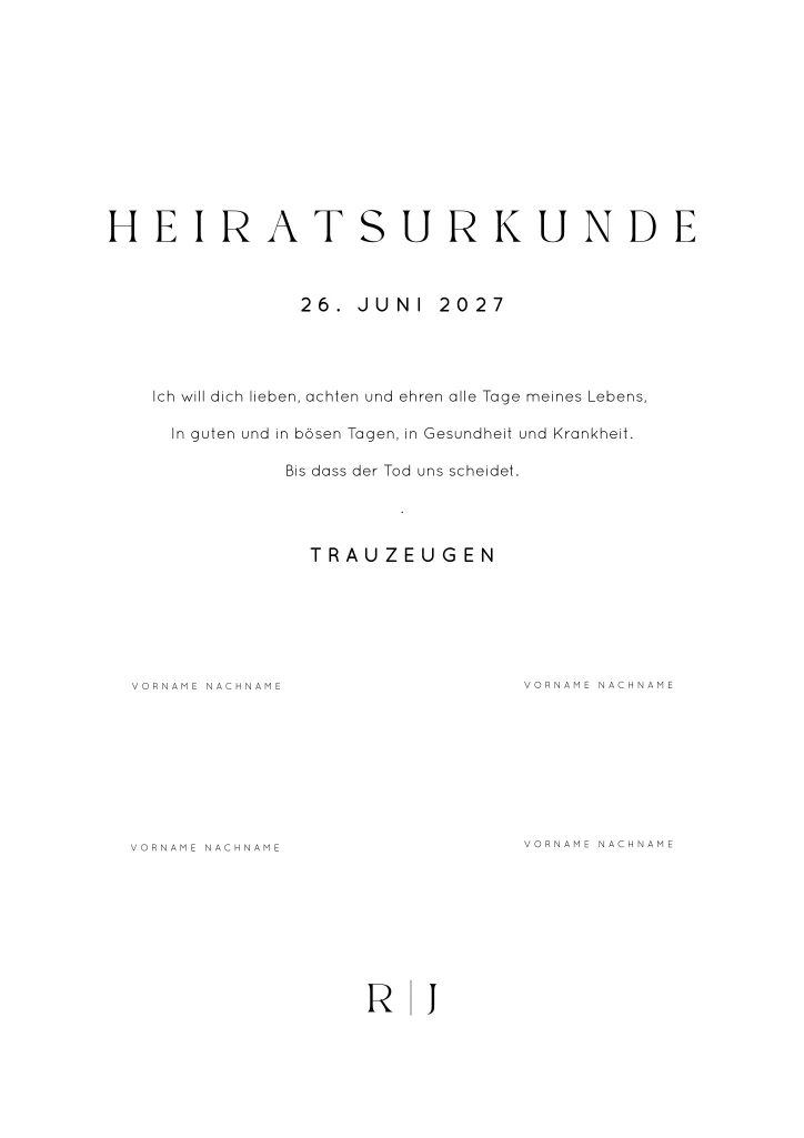 Unterschreibt an eurem Hochzeitstag auch diese inoffizielle Urkunde als Erinnerung: ein A4-Poster, das ihr später in eurem Haus aufhängen könnt. Wir empfehlen, zur Sicherheit, zwei zu bestellen.