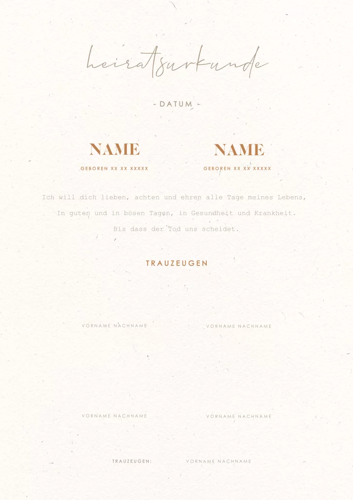 Unterschreibt an eurem Hochzeitstag auch diese inoffizielle Urkunde als Erinnerung: ein A4-Poster, das ihr später in eurem Haus aufhängen könnt. Wir empfehlen, zur Sicherheit, zwei zu bestellen.