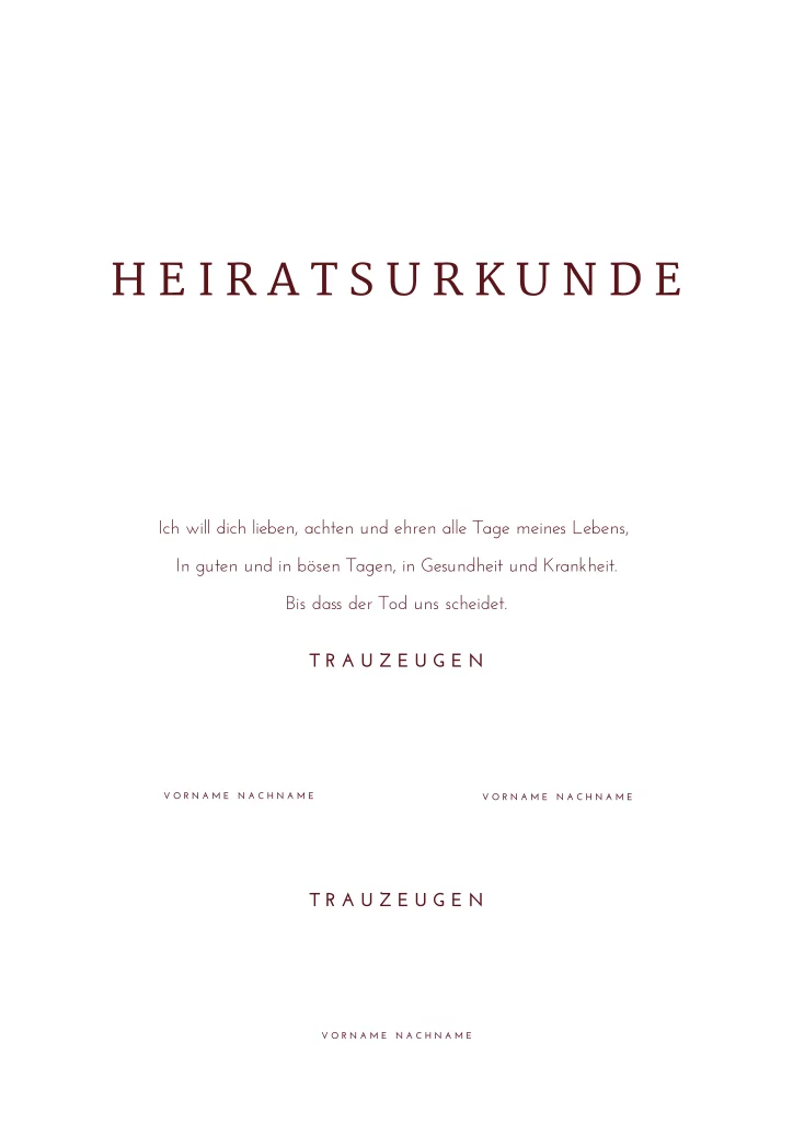 Unterschreibt an eurem Hochzeitstag auch diese inoffizielle Urkunde als Erinnerung: ein A4-Poster, das ihr später in eurem Haus aufhängen könnt. Wir empfehlen, zur Sicherheit, zwei zu bestellen.