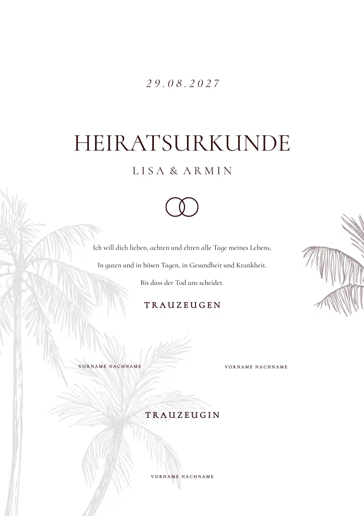 Unterschreibt an eurem Hochzeitstag auch diese inoffizielle Urkunde als Erinnerung: ein A4-Poster, das ihr später in eurem Haus aufhängen könnt. Wir empfehlen, zur Sicherheit, zwei zu bestellen.