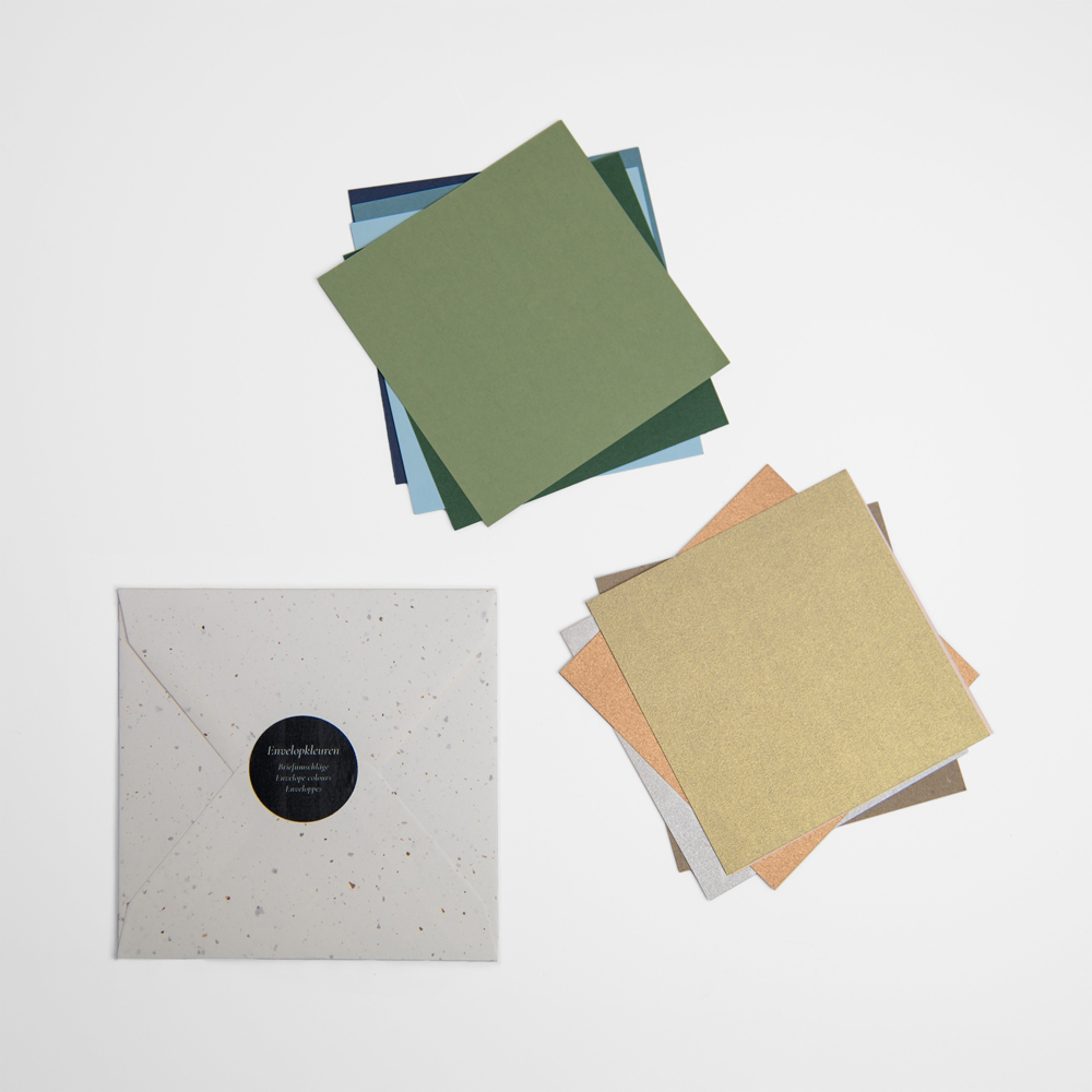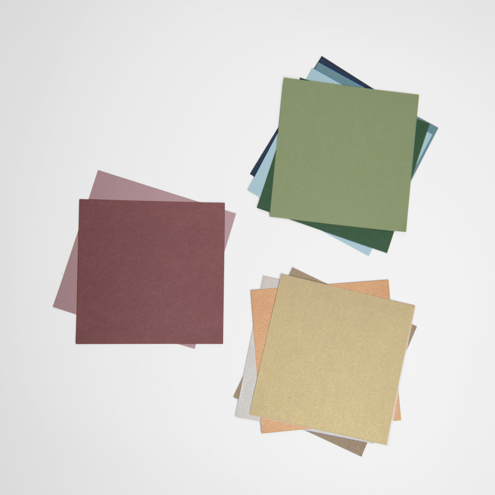 Bist du unsicher bei der Wahl der Umschlagfarbe? In diesem Musterset findest du 30+ verschiedene Farbbeispiele. So entdeckst du ganz leicht die perfekte Ergänzung zu deiner Karte. Von modernen Farbtönen bis hin zu glänzenden Metallic-Varianten begleitet dich dieses Set bei deiner Entscheidung.