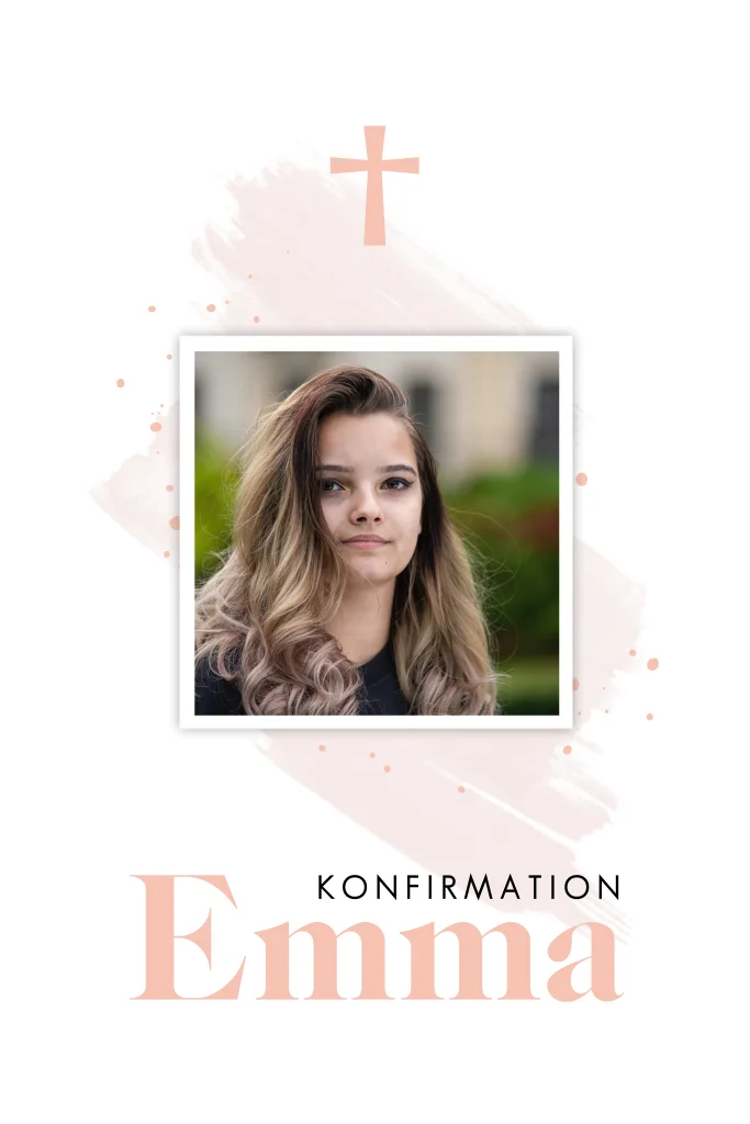 Ergänzen Sie diese trendige Konfirmationskarte mit Ihren eigenen Fotos. Auf der Vorder- und Rückseite der Karte können Sie ein Foto in den weißen Rahmen einfügen. Die Karte ist auch mit rosa Aquarellfarben, einem Kreuz und runden Ecken verziert. Bearbeiten Sie diese Einladung ganz einfach in unserem Online-Editor.Das Design der von dir gewählten Karte wurde automatisch in andere Formate umgestellt. Wähle einfach deinen Wunschformat aus und platziere alle Texte und Elemente an der richtigen Stelle im Editor. Du hast Fragen oder dein Favorit steht nicht zur Auswahl? Dann kontaktiere uns bitte und wir werden uns gemeinsam darum kümmern!