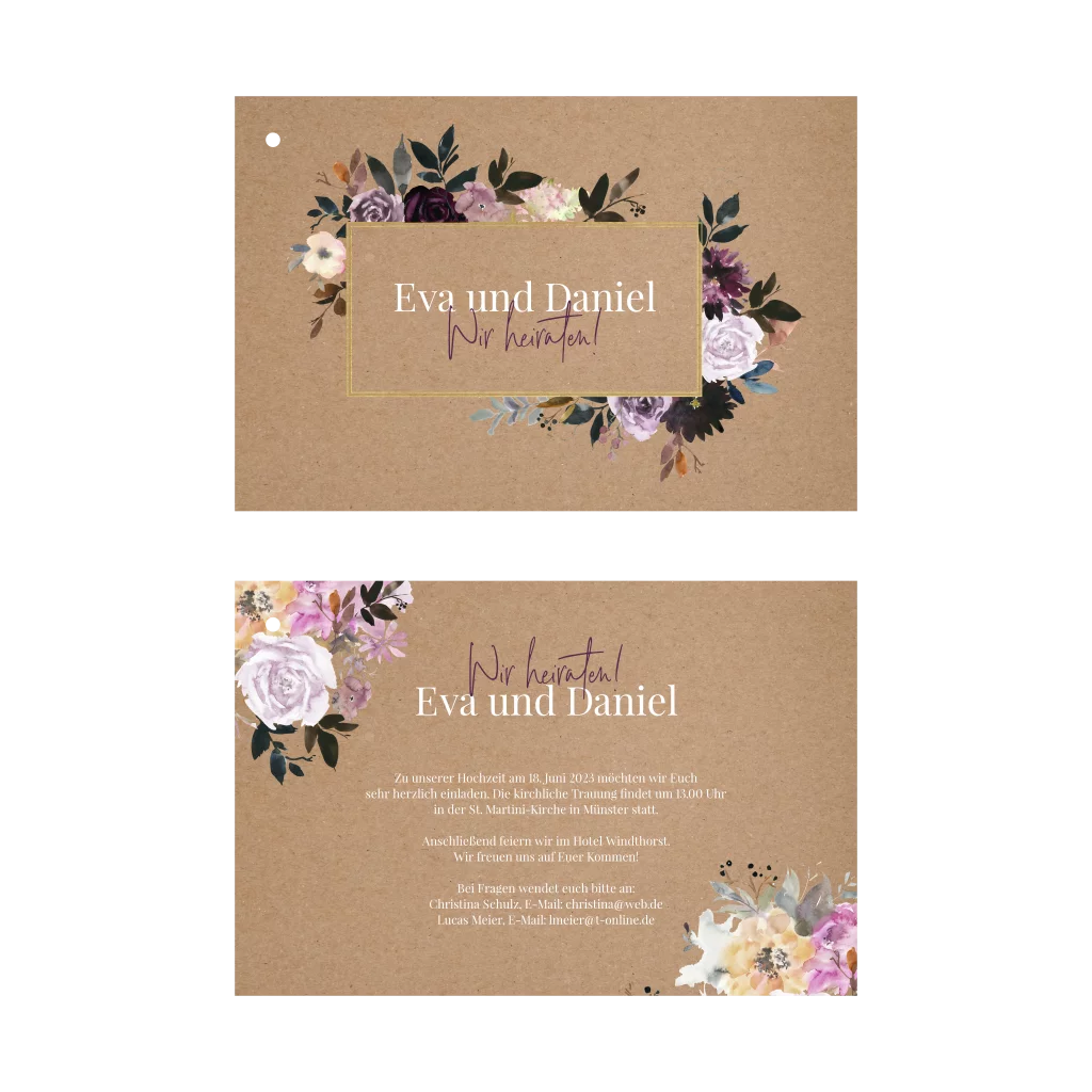Das Design der von dir gewählten Karte wurde automatisch in andere Formate umgestellt. Wähle einfach deinen Wunschformat aus und platziere alle Texte und Elemente an der richtigen Stelle im Editor. Du hast Fragen oder dein Favorit steht nicht zur Auswahl? Dann kontaktiere uns bitte und wir werden uns gemeinsam darum kümmern!