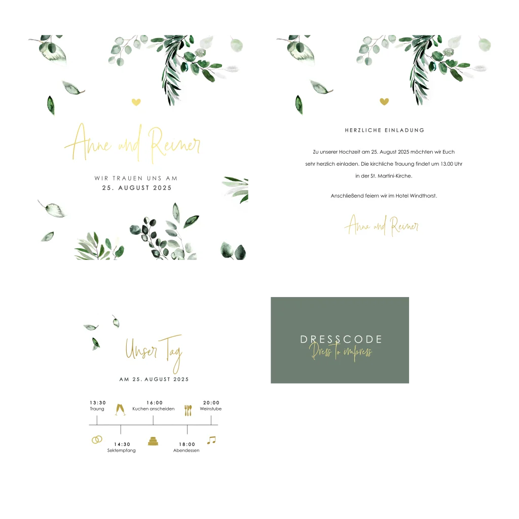 Das Design der von dir gewählten Karte wurde automatisch in andere Formate umgestellt. Wähle einfach deinen Wunschformat aus und platziere alle Texte und Elemente an der richtigen Stelle im Editor. Du hast Fragen oder dein Favorit steht nicht zur Auswahl? Dann kontaktiere uns bitte und wir werden uns gemeinsam darum kümmern!