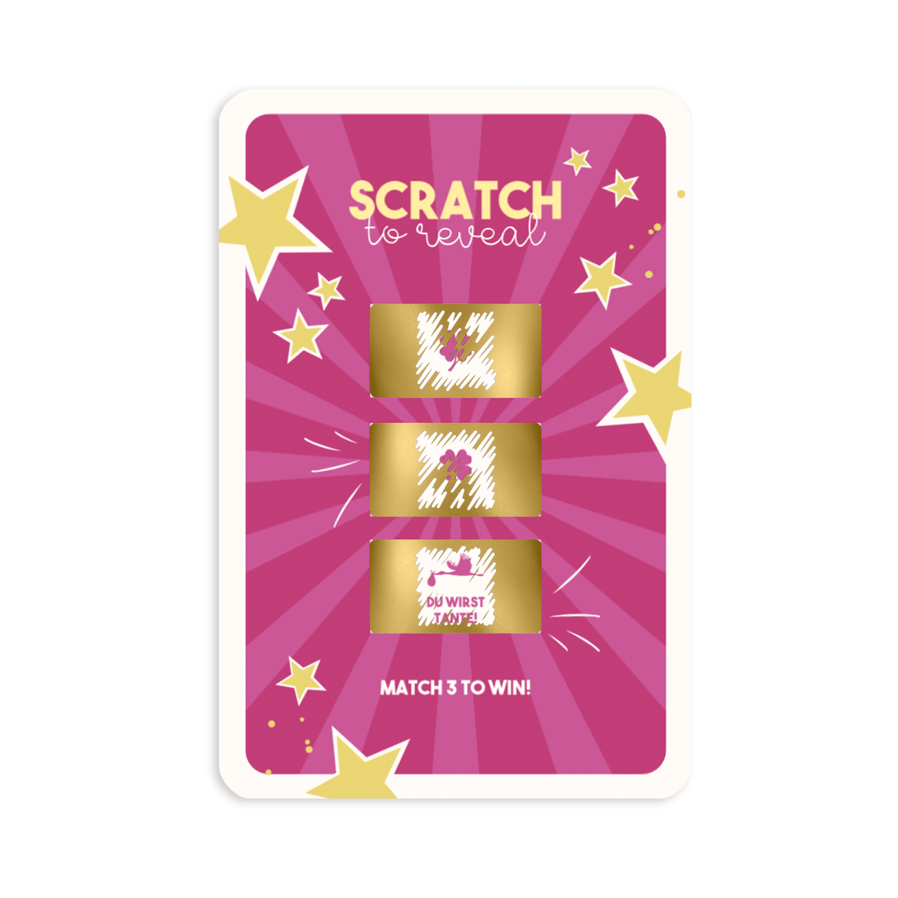 Schwangerschaftsankündigung in Pink als Rubbellos mit Sternen.