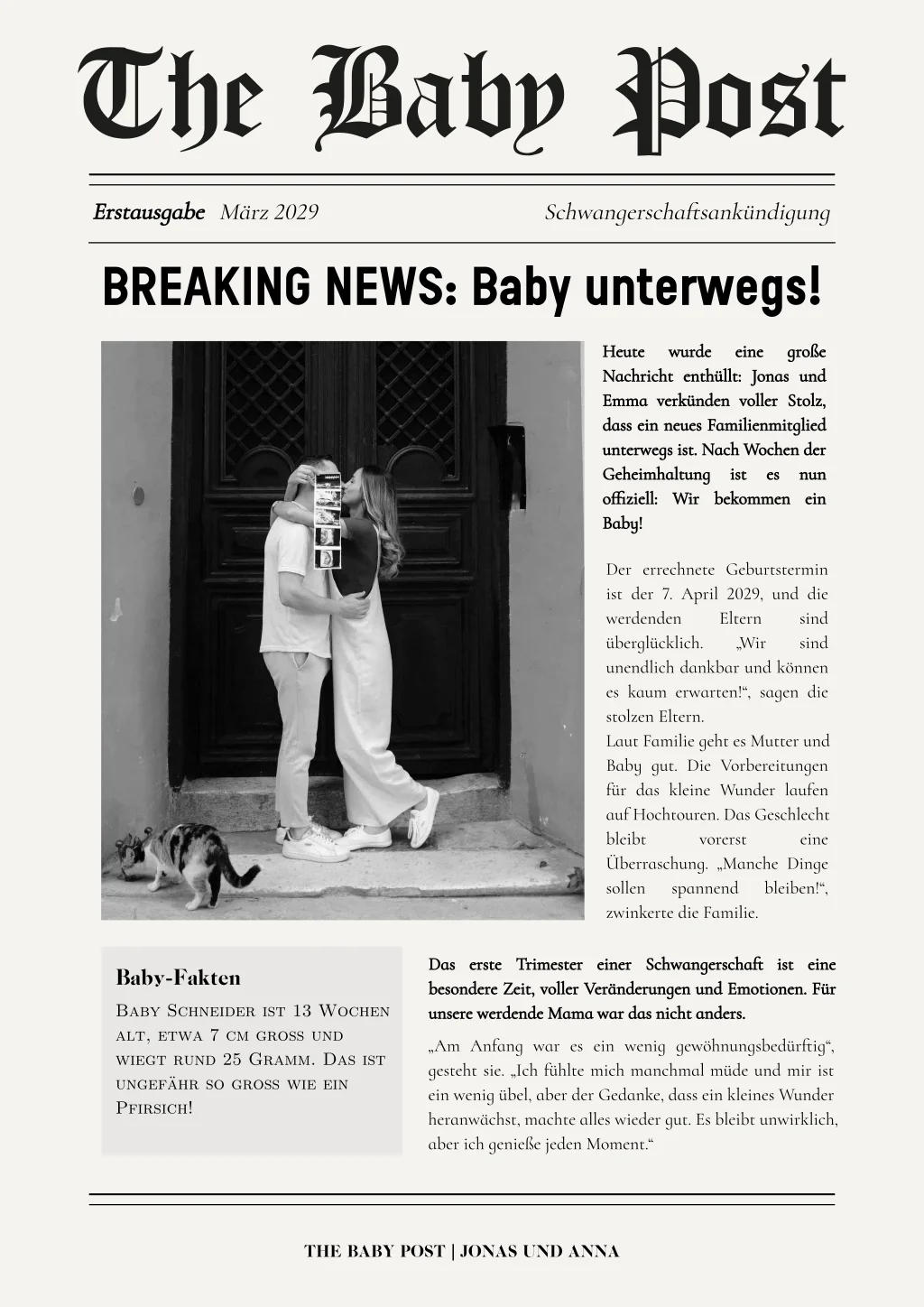 Schwangerschaftsankündigung im Zeitungsstil