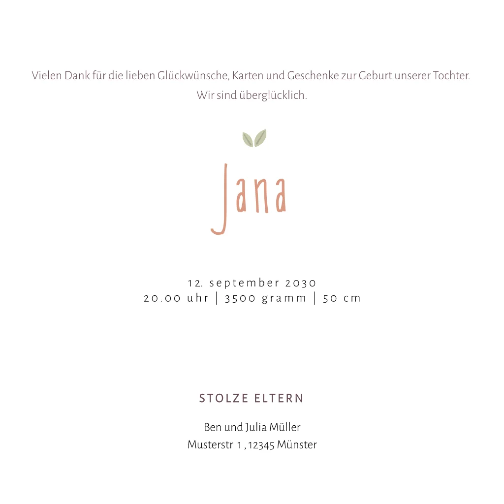 Auf der Suche nach mehr Inspiration? Sieh dir gerne auch unsere anderen Dankeskarten zur Geburt an.