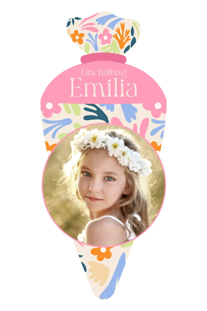 Verspielte Einladungskarte zur Einschulung. Die Karte ist gestanst in der Vorm einer Schultüte. Auf der Vorderseite gibts es Platz für in großes Foto vom Schulking. Darüber und darunter kann man den Namen, das Datum und andere Infos hinzuschreiben. Auf der Rückseite findet sich der Einladungstext. #valentinaDas Design der von dir gewählten Karte wurde automatisch in andere Formate umgestellt. Wähle einfach deinen Wunschformat aus und platziere alle Texte und Elemente an der richtigen Stelle im Editor. Du hast Fragen oder dein Favorit steht nicht zur Auswahl? Dann kontaktiere uns bitte und wir werden uns gemeinsam darum kümmern!