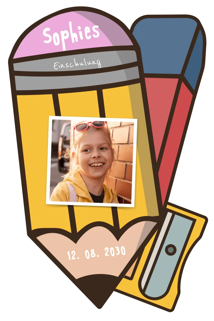 Einladung zur Einschulung als illustrierte Schreibwaren mit Foto