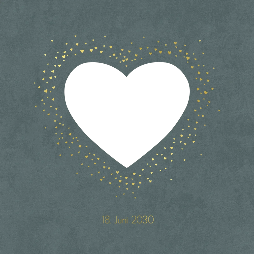 Hochzeitseinladung in Grün mit ausgeschnittener Herzform und Goldfolie. Dieses Design ist perfekt für Paare, die nach einer romantischen und verspielten Einladung suchen.