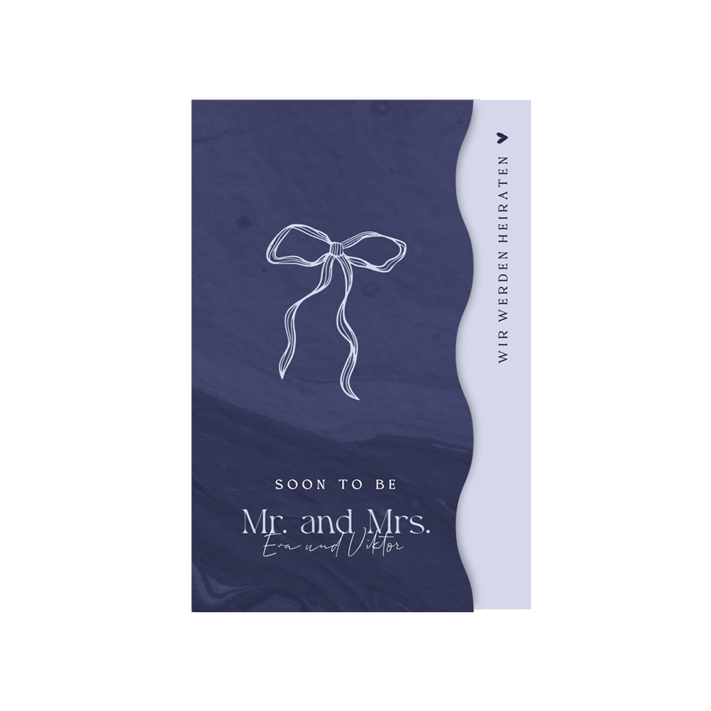 Eine stilvolle Hochzeitskarte mit gewelltem Rand in der absolut angesagten Trendfarbe dieses Jahres: Future Dusk. Diese geheimnisvolle Farbe verleiht deiner Einladung einen besonders einzigartigen Look, der durch den strukturierten Hintergrund perfekt abgerundet wird. Bearbeite das Design ganz einfach im Online-Editor.