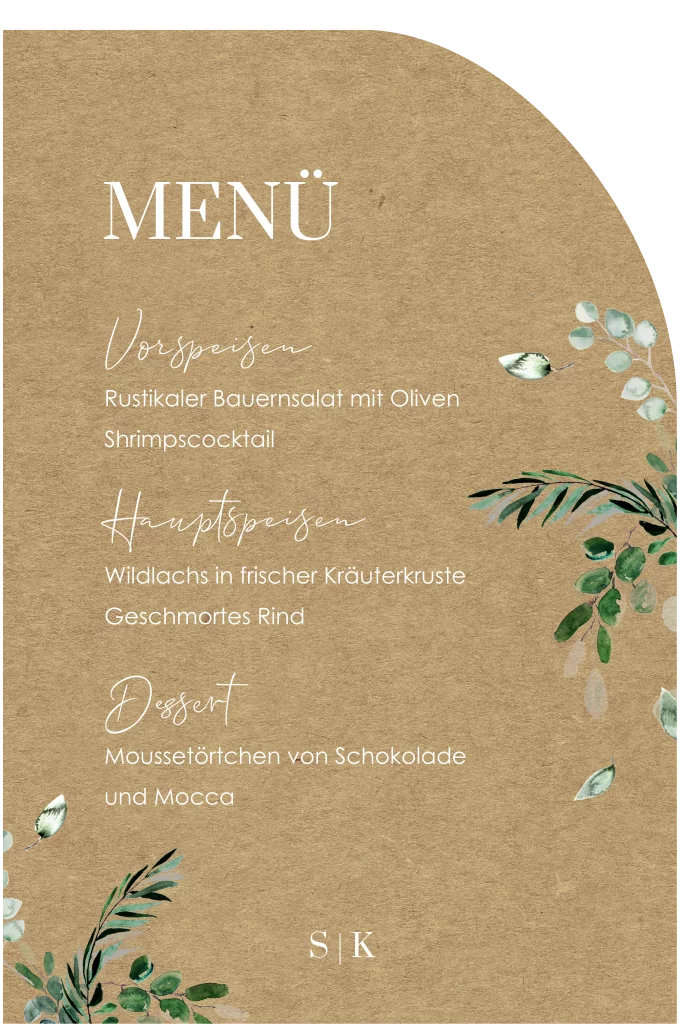 Menükarte Greenery mit origineller Form und Kraft-Optik