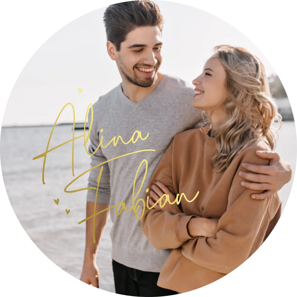 Wollt ihr etwas Ausgefallenes? Entscheidet euch dann für eine Hochzeitskarte mit einer originellen Form! Runde Karten mit Goldfolie haben ein sehr luxuriöses Aussehen. Bearbeitet die Karte einfach im Editor und fügt eure eigene Namen und Text hinzu.Melde dich für unseren Newsletter an und profitiere von exklusiven Angeboten, kreativen Ideen und Neuigkeiten aus unserer Produktwelt. Als Dankeschön für deine Anmeldung schenken wir dir einen kostenlosen Probedruck deiner Karte.