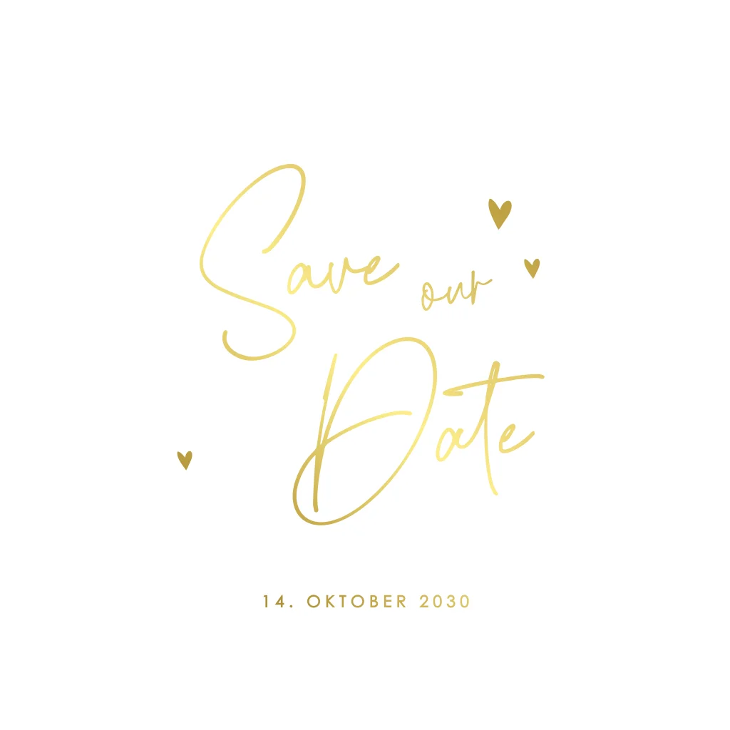 Save the Date Karte in Sechseckform mit Herzen und Foliendruck