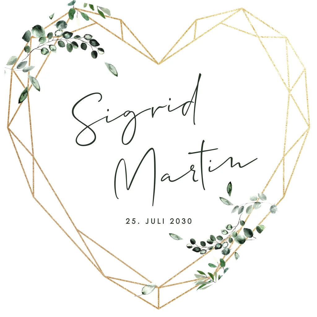 Hochzeitseinladung mit Blättern in Herzform. Dieses Design ist perfekt für Paare, die nach einer stilvollen und floralen Einladung suchen.