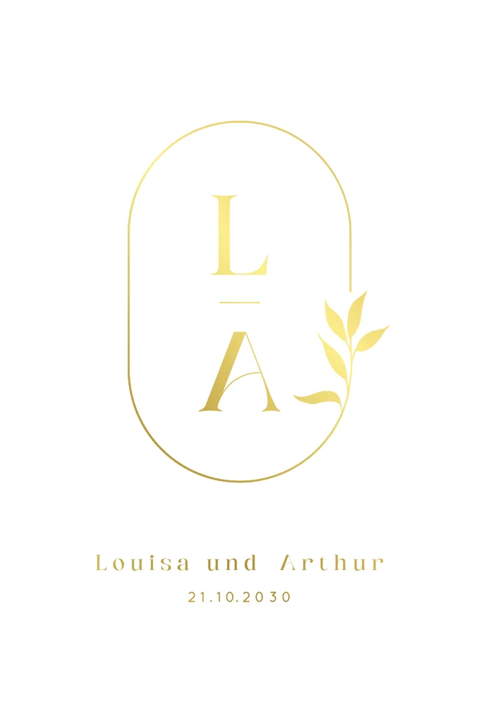 Hochzeitseinladung in origineller Form mit Initialen in Goldfolie. Dieses Design ist perfekt für Paare, die nach einer schlichten und stilvollen Einladung suchen.