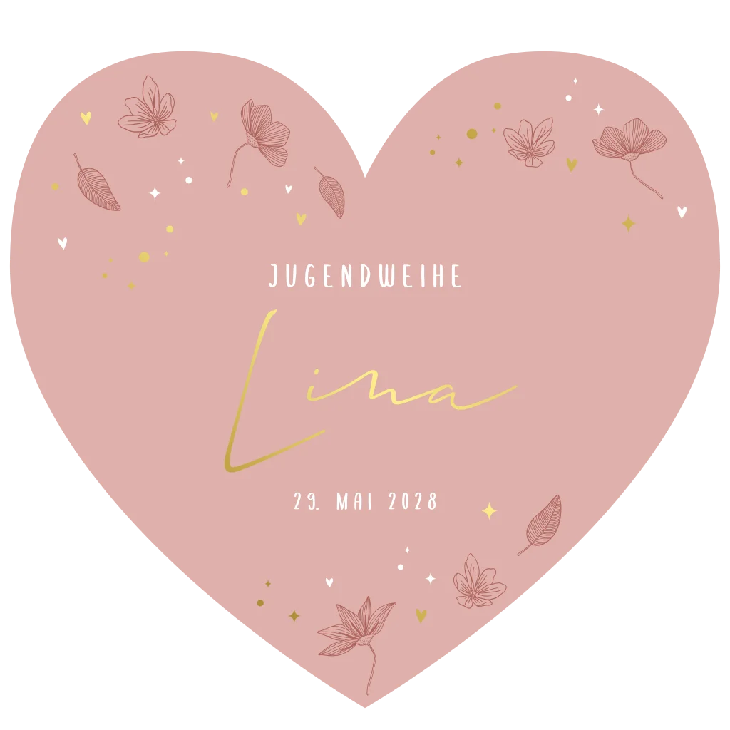 Originelle Einladung zur Jugendweihe in Herzform mit Goldfolie