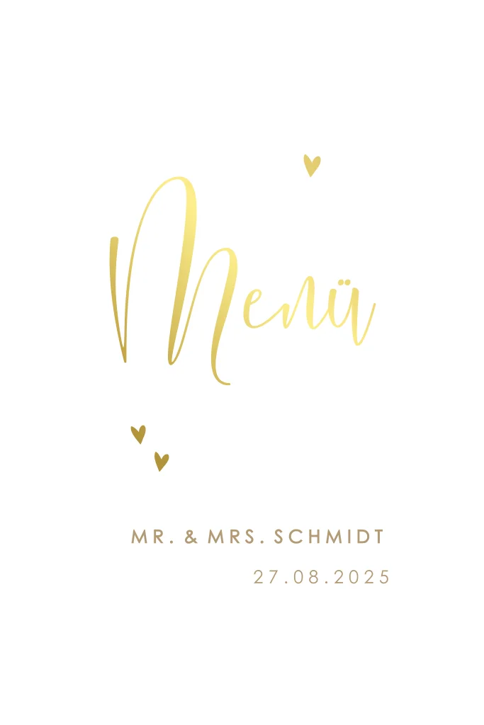 Menükarte in geometrischer Form und Goldfolien-Herzen