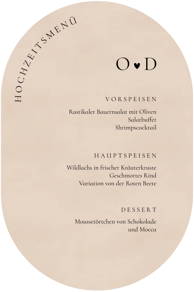 Stilvolle Menü Karte in beigen und ovaler Form