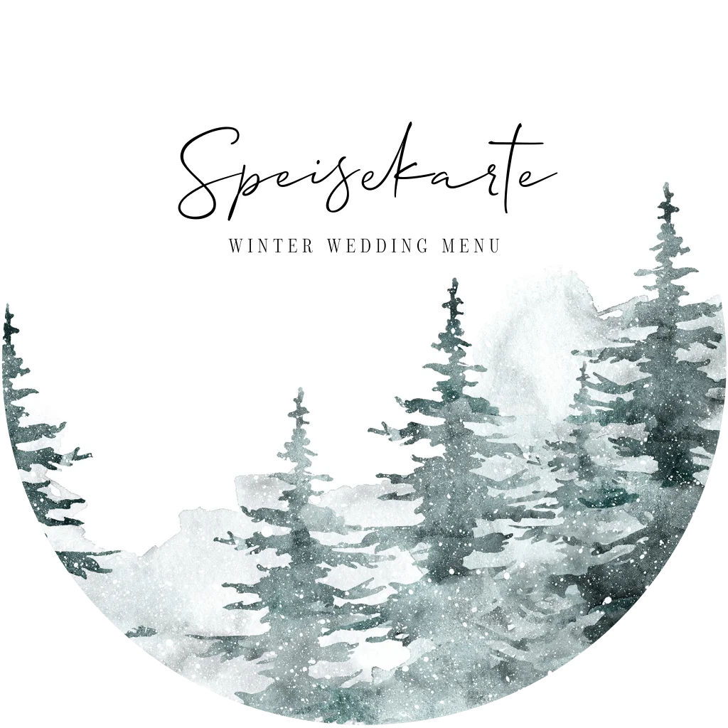 Winterliche Menükarte mit Aquarell-Kiefernbaum