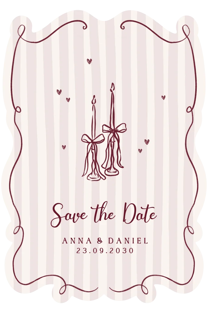 Trendige Save the Date Karte in Berry mit Streifen und Illustrationen