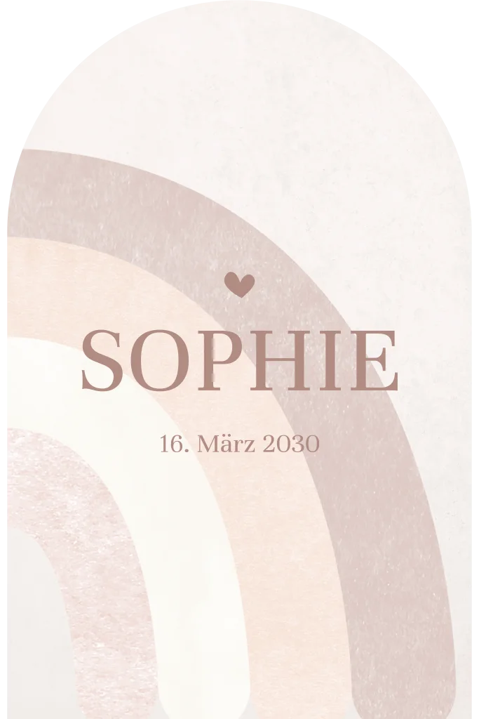 Einladung zur Taufe in Bogenform mit Regenbogen in Rosatönen