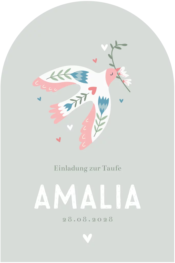 Einladung zur Taufe in Bogenform mit Tauben Motiv auf der Vorderseite