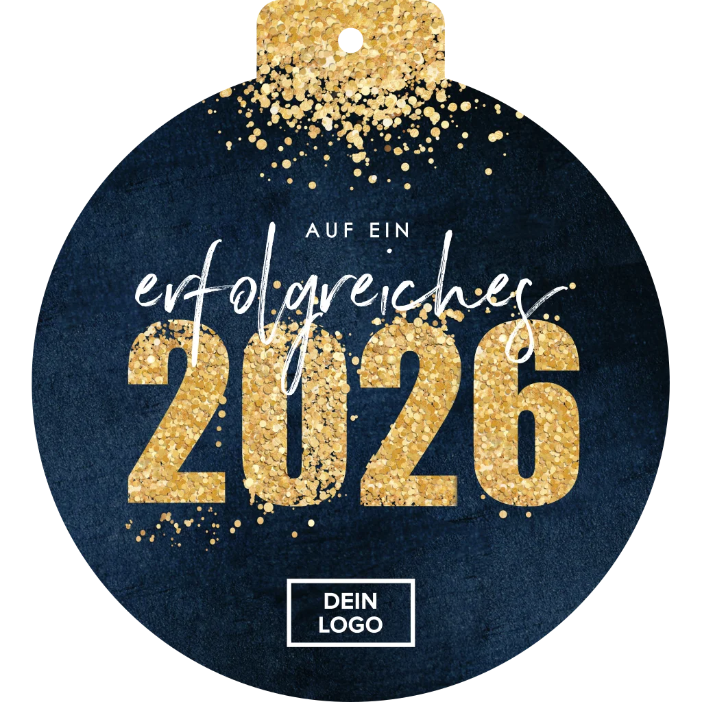 Schicke geschäftliche Weihnachtskarte in der Form einer Weihnachtskugel mit Gold