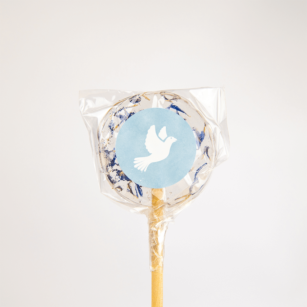 Aufkleber mit blauem Hintergrund und Taube