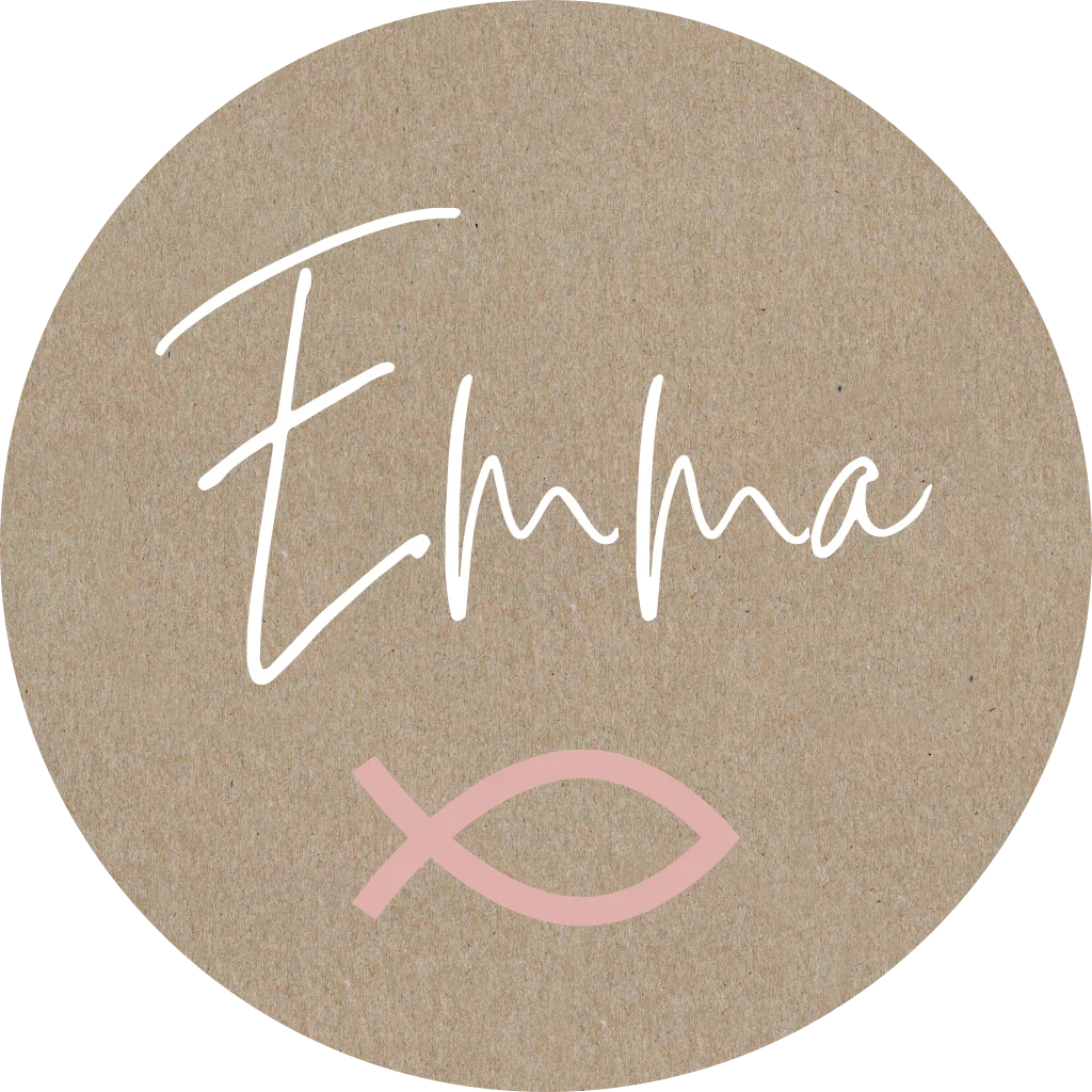 Runder Aufkleber zur Taube im Kraft-Look mit rosa Fisch ø 44 mm - 25 Stück