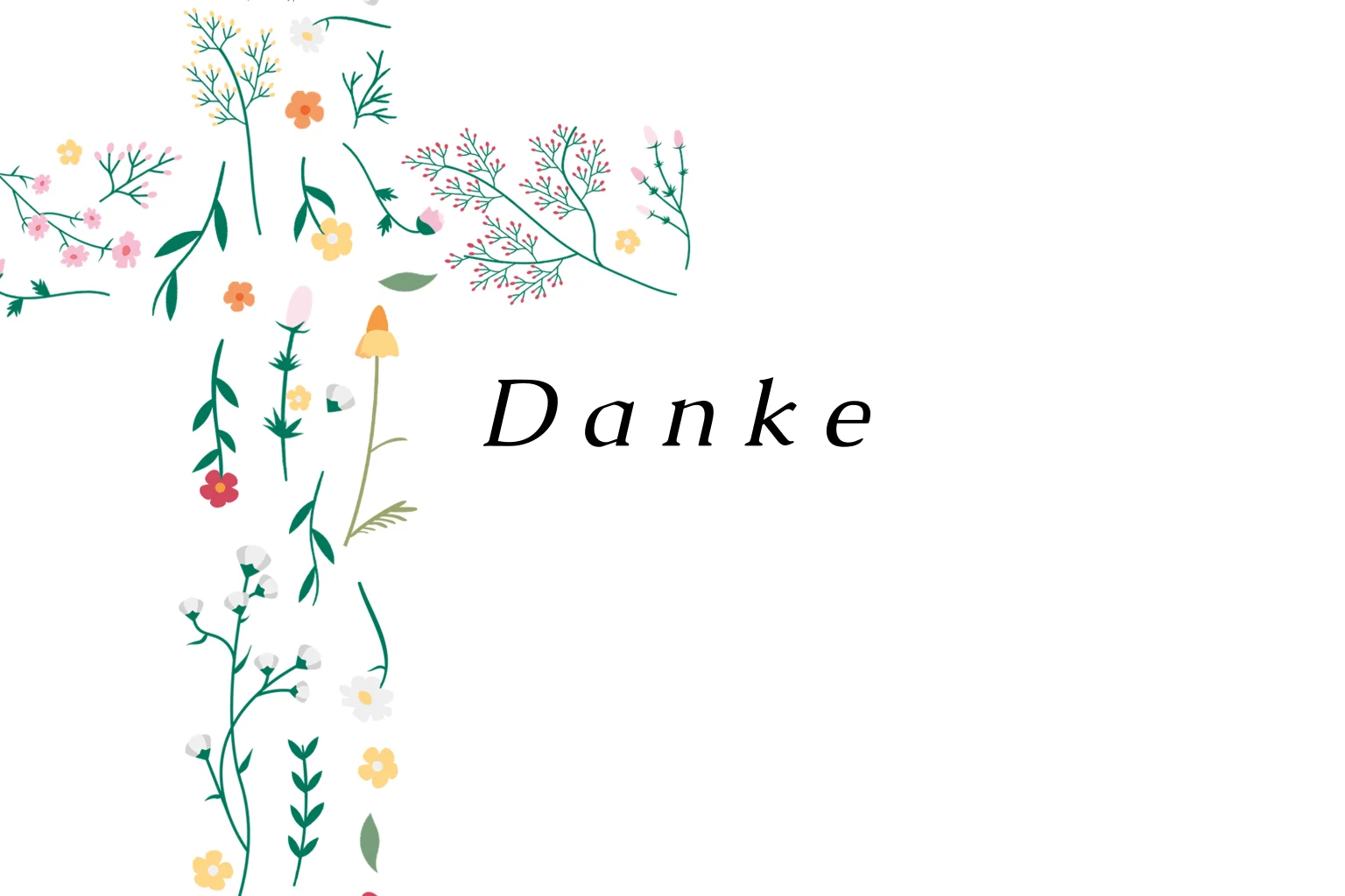 Dankeskarte Taufe mit Blumen in Form eines Kreuzes