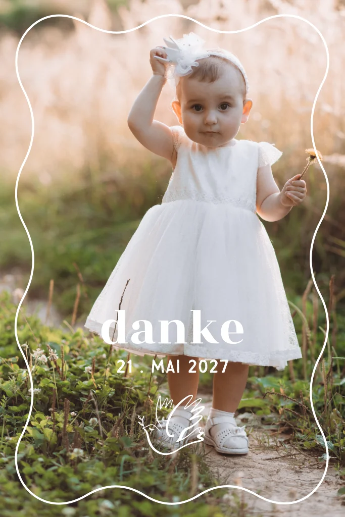 Dankeskarte Taufe mit Foto auf der Vorderseite und Taube