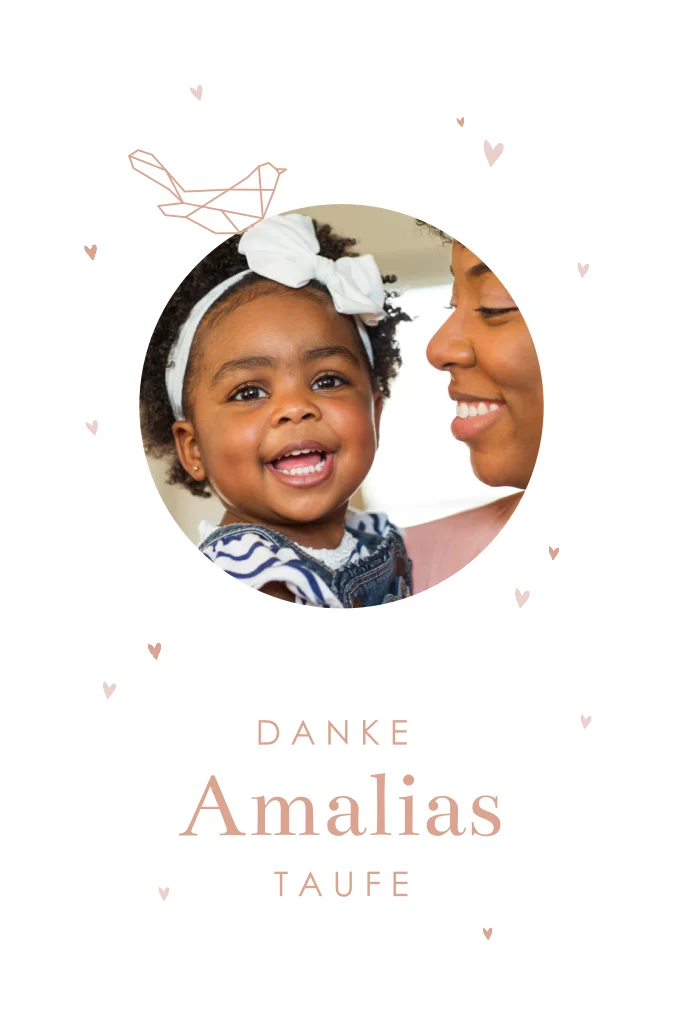Dankeskarte Taufe mit geometrischen Tieren und rundem Foto