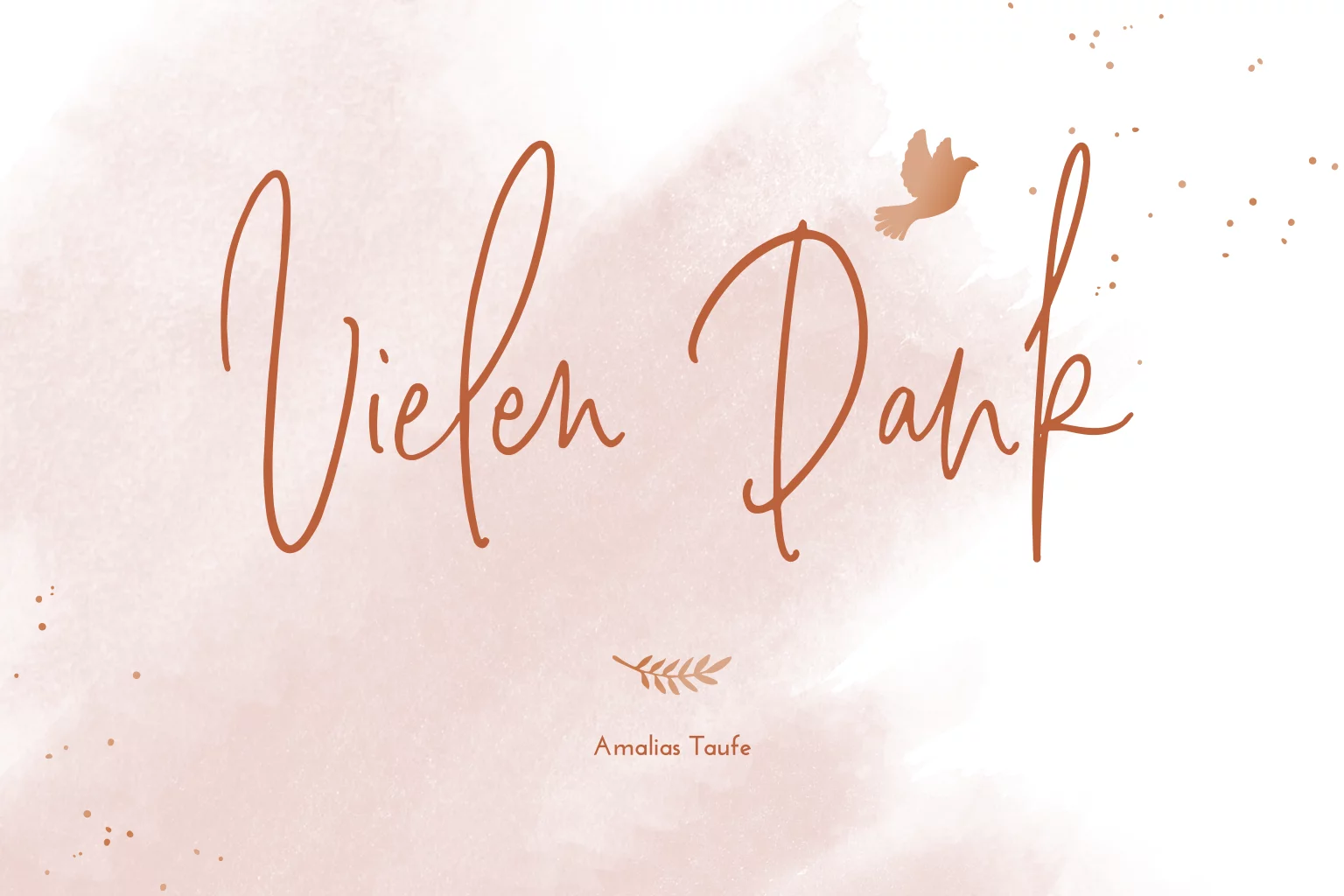 Danksagung Taufe mit rosa Aquarell Hintergrund und Hochglanz