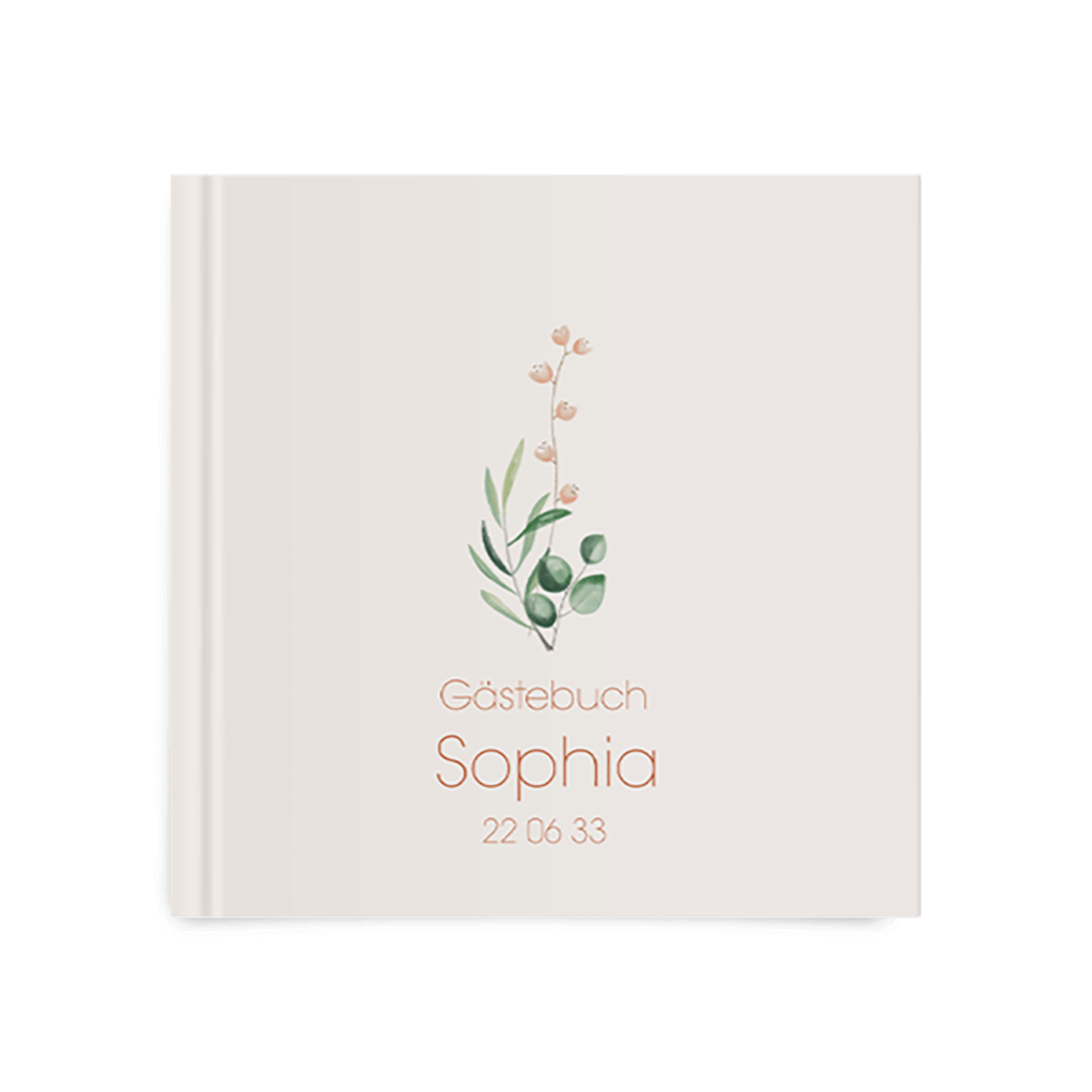 Ein hübsches Gästebuch mit aquarellierten Zweigen und Blumen 30x30cm