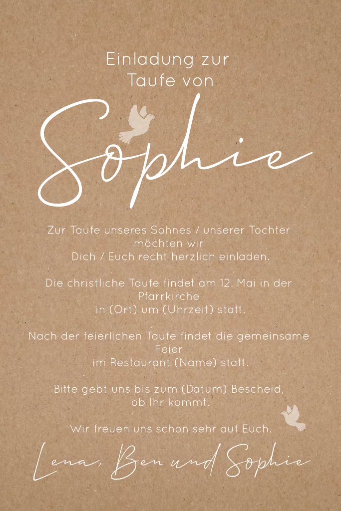 Das Design der von dir gewählten Karte wurde automatisch in andere Formate umgestellt. Wähle einfach deinen Wunschformat aus und platziere alle Texte und Elemente an der richtigen Stelle im Editor. Du hast Fragen oder dein Favorit steht nicht zur Auswahl? Dann kontaktiere uns bitte und wir werden uns gemeinsam darum kümmern!
