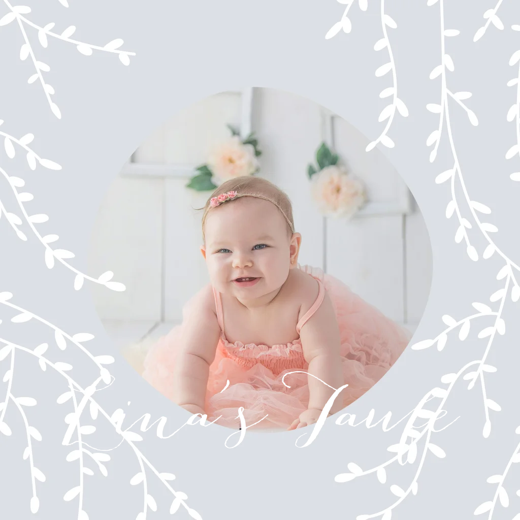 Einladung zur Taufe mit verspielten Zweigen, Foto und Goldfolie