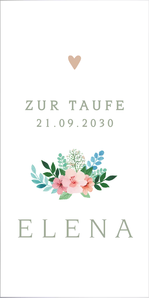 Romantische Taufkerze mit Blumenherz, 20 cm hoch, 8 cm Ø