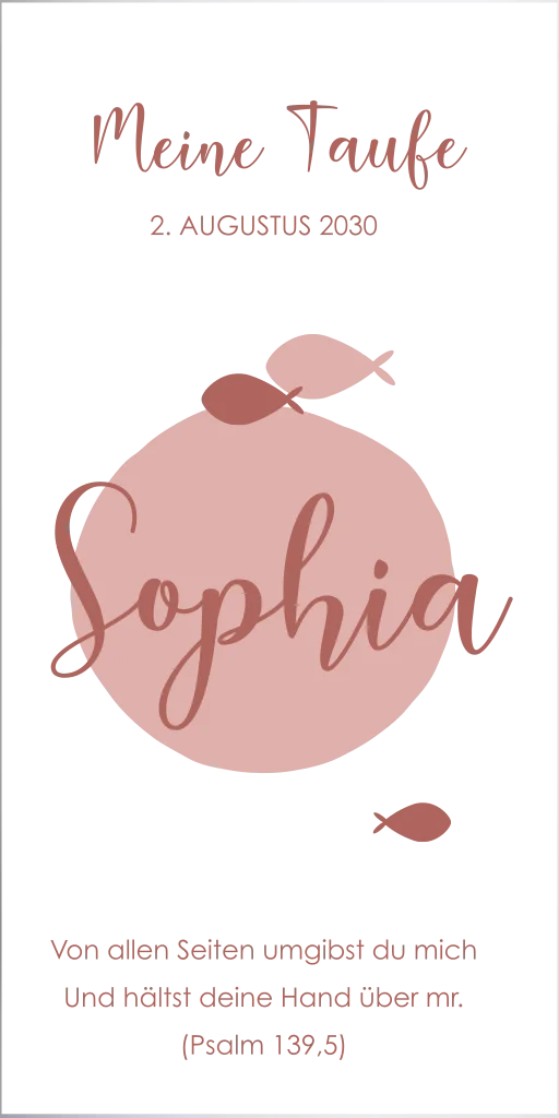 Taufkerze mit Fischsymbol und Vers, 20 cm hoch, 8 cm Ø