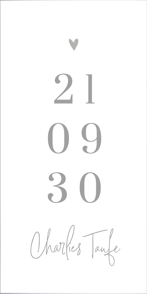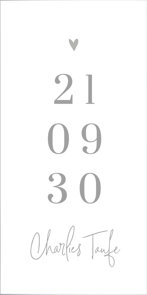 Taufkerze mit Herz, vertikalen Zahlen und Namen - 20 cm hoch, 8 cm Ø