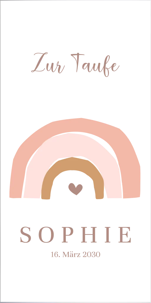 Taufkerze Regenbogen in Beige-Rosé, 20 cm hoch, 8 cm Ø