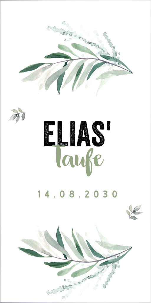 Taufkerze mit Zweigen und Namen - 20 cm hoch, 8 cm Ø