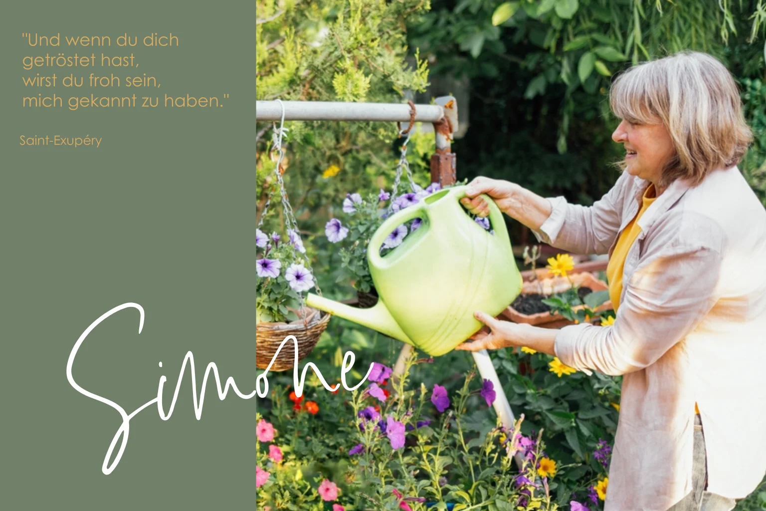 Persönliche Dankeskarte mit Zitat und Foto im Garten. Ideal zur Danksagung nach dem Verlust eines geliebten Menschen - selbst gestaltbar online.