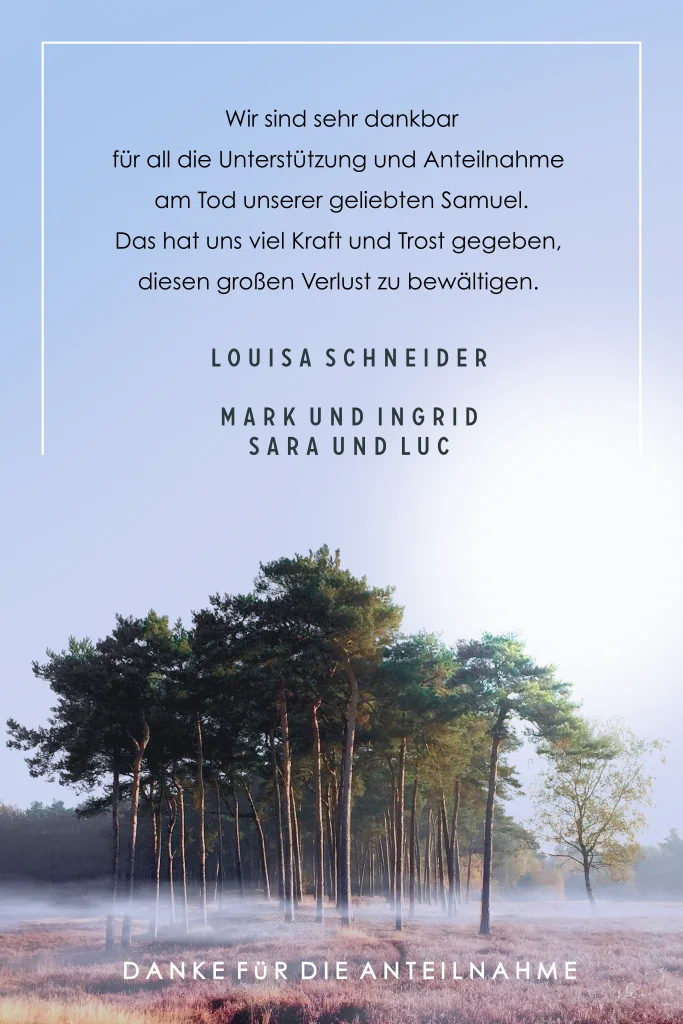 Stille Danksagung mit Waldmotiv und viel Raum für eigene Worte – für einfühlsame Dankbarkeit nach einem Todesfall. Jetzt gestalten.
