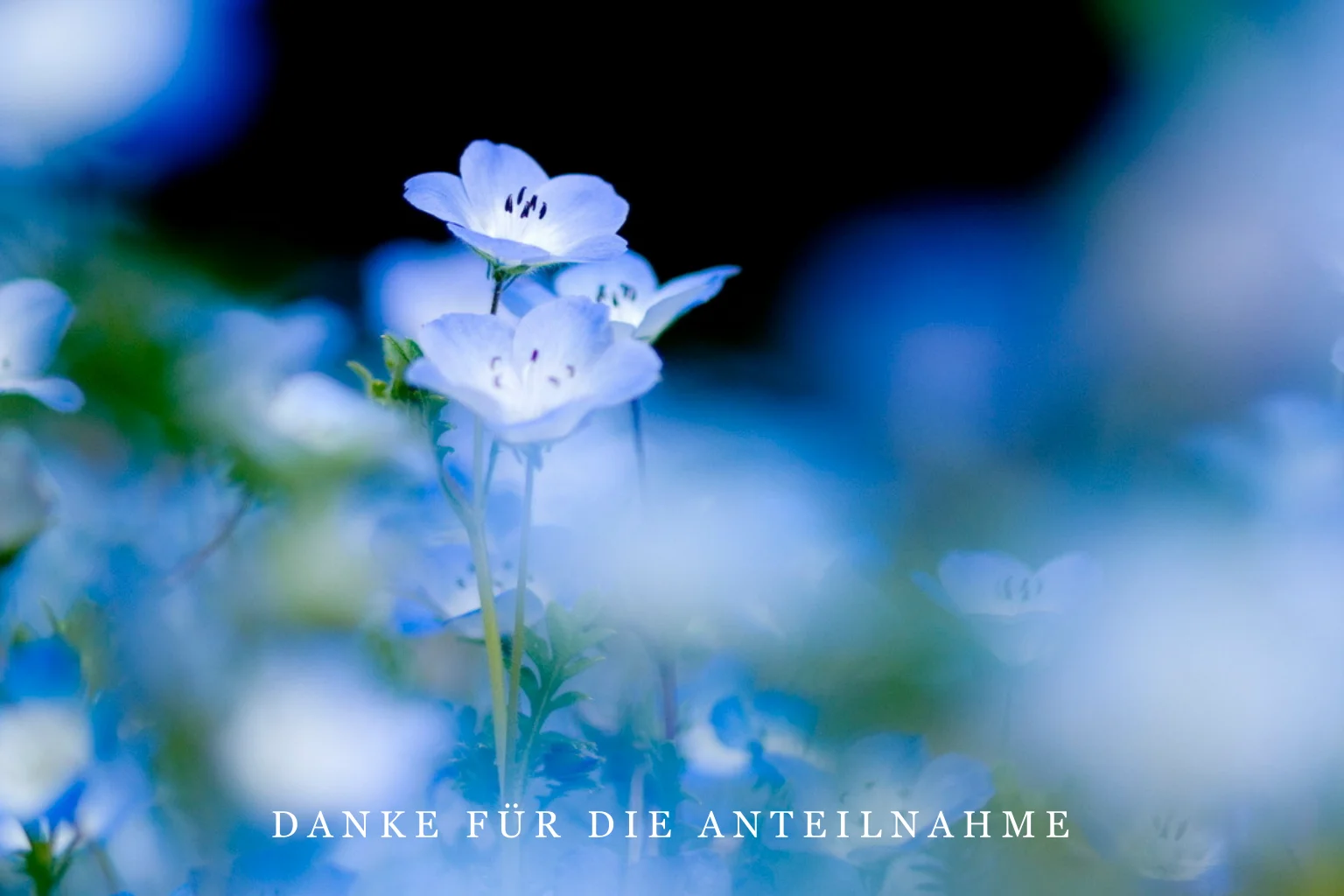Dankeskarte Trauer mit blauen Blumen