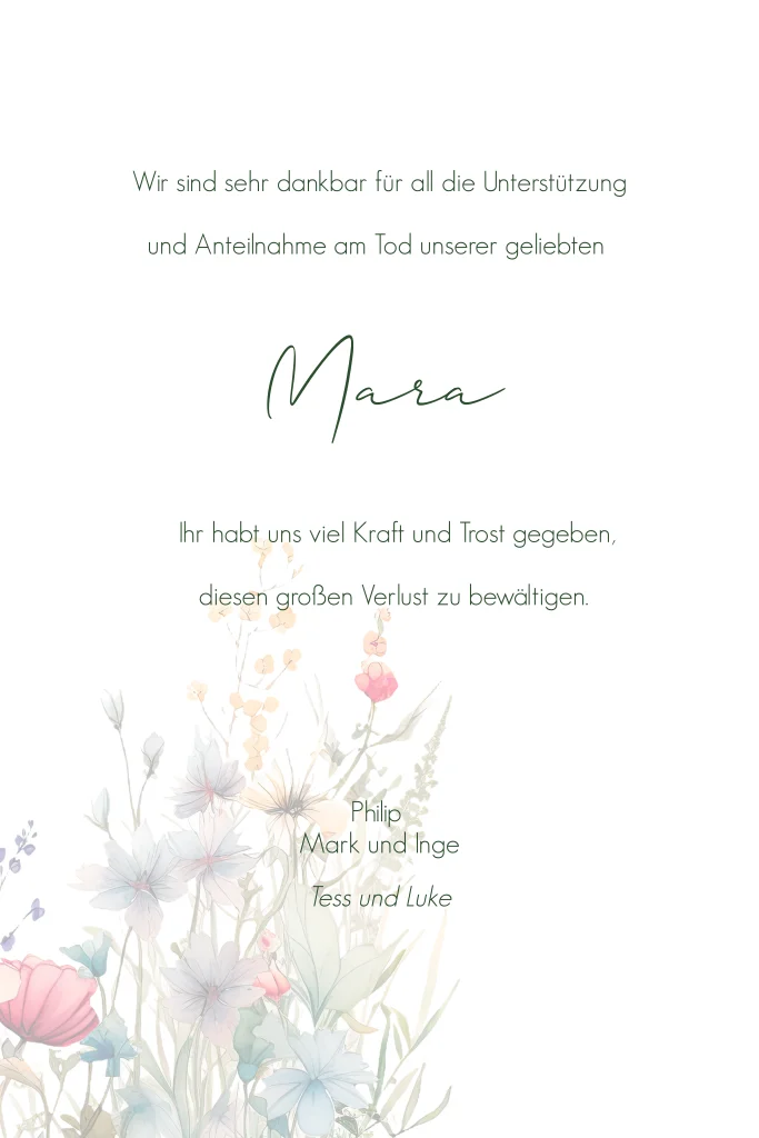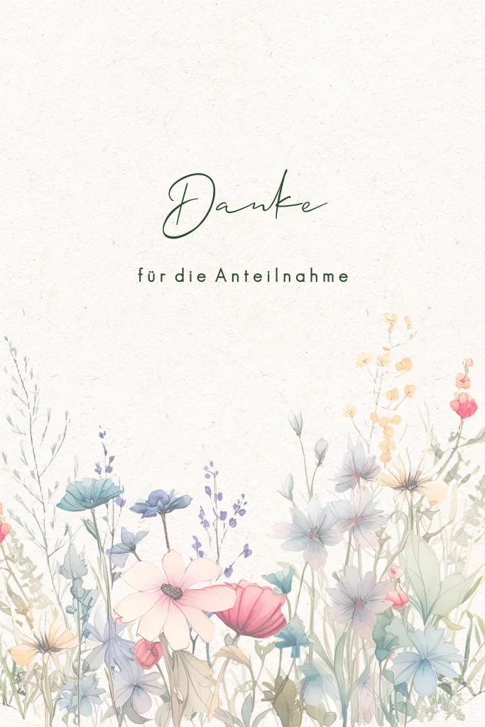 Zarte Danksagung Trauerkarte mit Aquarell-Wiesenblumen Motiv
