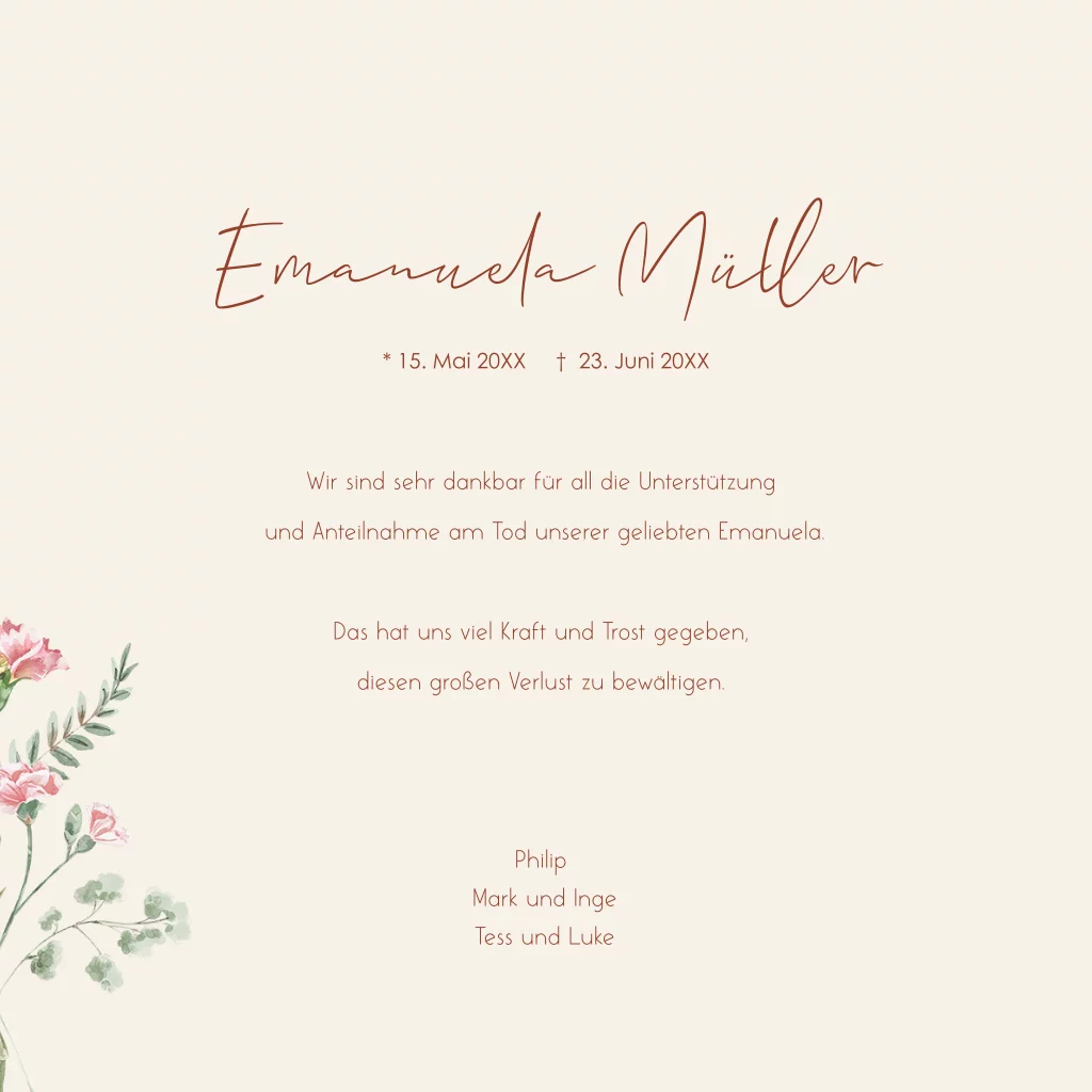 Dankeskarte Trauer mit Foto und Blumenrahmen